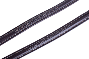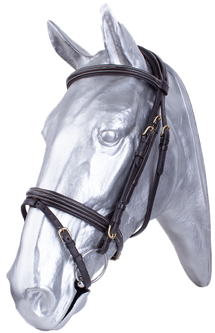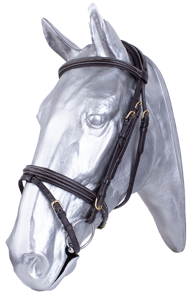 Marrysville ECO. Ekonomické provedení naší oblíbené uzdečky Marysville. Vyrobeno z indické kůže prémiové kvality. Rozšířené upevnění nánosníku zajišťuje jeho stabilnější pozici a rovnoměrné rozložení tlaku. Rozšířený měkce polstrovaný nátylník eliminuje tlak na citlivé oblasti za ušima. Uzdečka je ozdobně kontrastně prošita. Dodáváno včetně plátěných otěží.