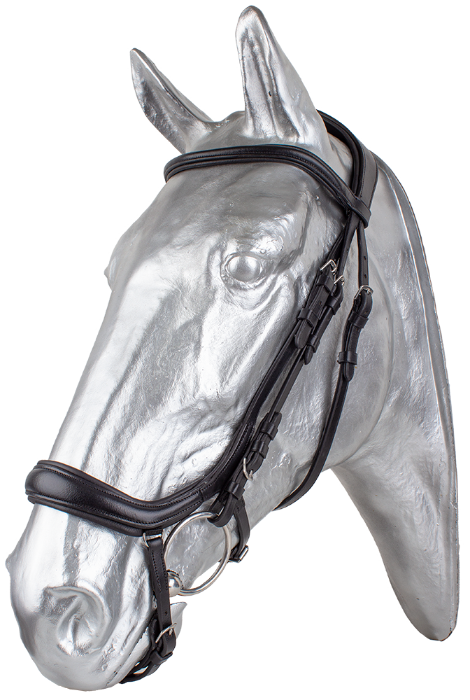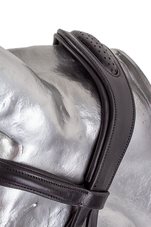 Speciální anatomická celokožená uzdečka s tvarovaným nánosníkem, který minimalizuje tlak na hlavní obličejové nervy. Extra vypodložený nátylník eliminuje tlak na krční a šíjové svaly a umožňuje větší volnost pro pohyb uší. Dodáváno včetně plátěných otěží se zarážkami.