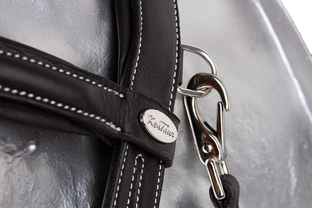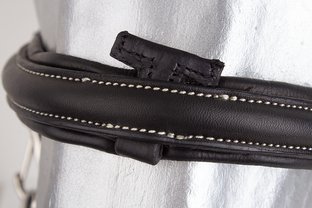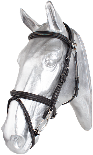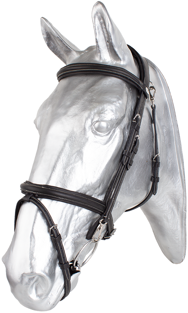 Exkluzivní provedení uzdečky z prvotřídní olejované kůže, díky které, je uzdečka velmi měkká. Podhrdelník se zapíná na karabiny z obou stran. Lícnice jsou také zakončeny karabinou pro snadnou výměnu udidla. Anglický kombinovaný nánosník s vyndávacím T kusem na upevnění podpínky. Rozšířený anatomický nátylník s prostorem na uši napomáhá rozložení tlaku. Vše měkkce podloženo pro maximální pohodlí a každodenní nošení. Dodáváno včetně plátěných otěží se zarážkami.
