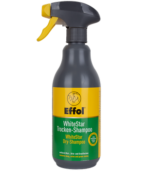 Šampon ve spreji. Výtažek z heřmánkových květů neutralizuje zežloutnutí srsti, hřívy a ocasu – srst se stane leskle bílou. Vhodné také pro bodové čištění fleků způsobených trusem. Panthenol hydratuje a posiluje tak ochrannou vrstvu kůže. Vlhkou srst jednoduše nasprejujte a prostředek do ní vetřete, pak ho opláchněte vodou.