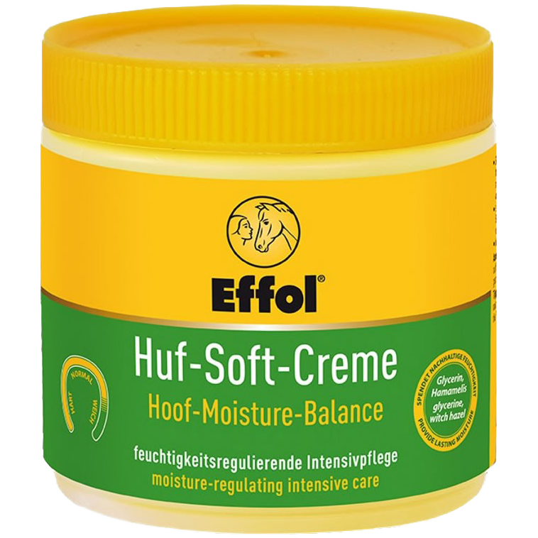 Balzám na kopyta koní EFFOL Hoof Soft velmi dobře zvlhčuje kopyta. Speciálně vyvinutá složka zajišťuje optimální vlhkost rohoviny kopyt a tím se zvyšuje jeho odolnost. - glycerín a vilín obsažený v přípravku dlouhodobě poskytují suchým a popraskaným kopytům vlhkost a podporují jejich elasticitu a schopnost zátěže - navenek je před vlhkostí chrání ochranný film z včelího vosku a lanolínu, odpuzující vodu.