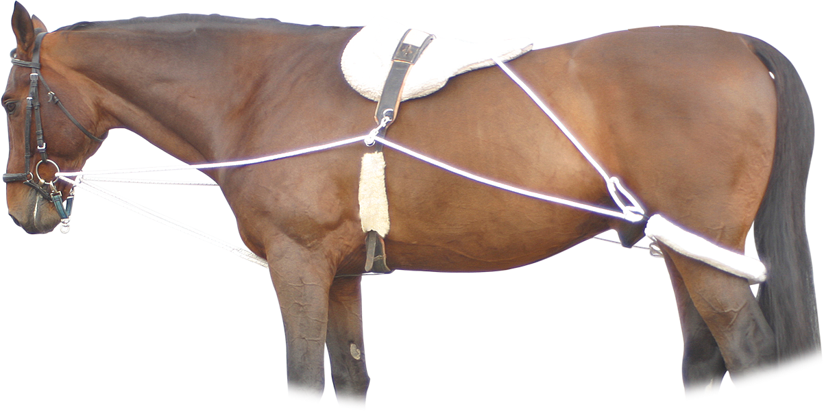 Oblíbený lonžovací systém pro aktivaci zádě a osvalování zad. Pomáhá podsazení, nutí koně pracovat zády bez zátěže jezdce. Výrazně urychluje proces 'předělání' koně. Aktivuje a posiluje zádovou oblast. Vhodné pro mladé koně, pro koně v rekonvalescenci a pro sportovně pracované koně. Vyrobeno z odolného provazu.
