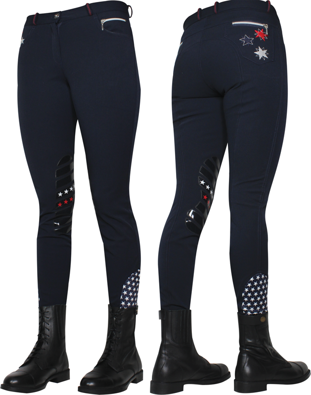 Dámské rajtky " hvězdičky" , atraktivní motiv hvězdiček na kapsách, na protiskluzových gripech, na kolenou a na elastických úpletech u kotníků.