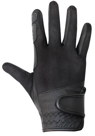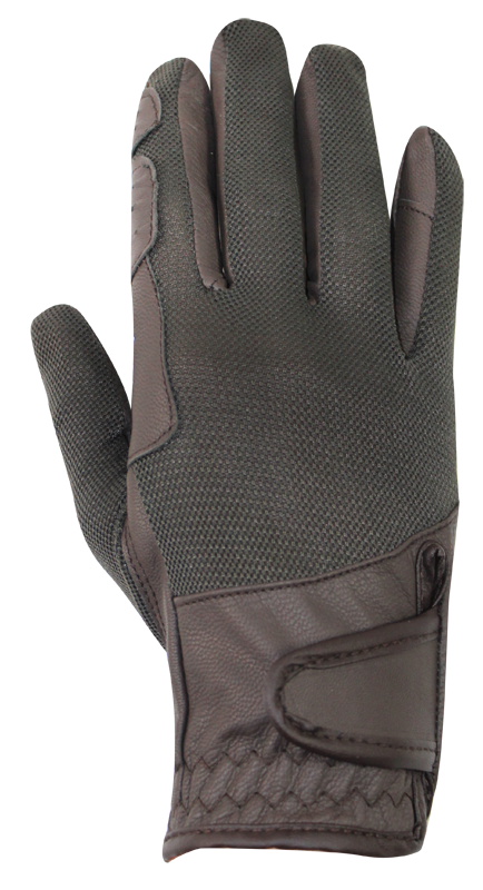 Kožené rukavice z jemné kozí kůže. Hřbet rukavice ze síťoviny, jednoduché a pevné zapínání, prodyšné a vyztužené v oblasti prstu.