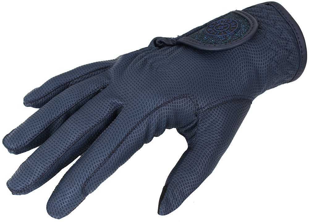 Dámské rukavice " Blue Shine". Materiál: pružný "DIGITAL SERINO", díky "TOUCH SCREEN" na ukazováčku a palci je možné ovládat dotykový display. Zapínaní na suchý zip s jemnými třpytkami.