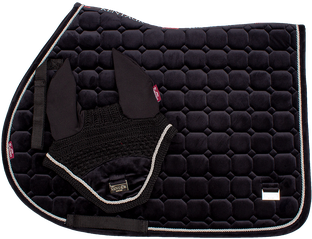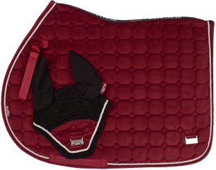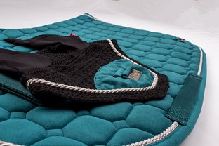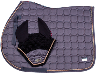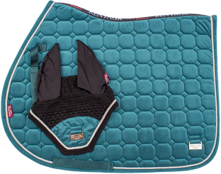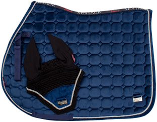 Podsedlová dečka s náušníky v nádherném sametovém vzhledu s nepřehlédnutelným designem prošívání, ozdobným lemem a kovovým logem Kentaur. Sametový povrch dodává luxusní vzhled a hebký pocit. Dečka je podšitá HI-TECH síťovinou s rychleschnoucí funkcí, která navíc výborně odvádí pot od koně.
