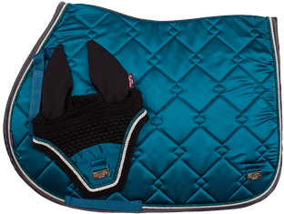 Podsedlová dečka s náušníky má díky saténové tkanině krásný lesk a styl. Ozdobný lem a kovové logo Kentaur dodává podsedlové dečce nepřehlédnutelný design. Dečka je podšitá HI-TECH síťovinou s rychleschnoucí funkcí, která navíc výborně odvádí pot od koně.