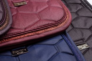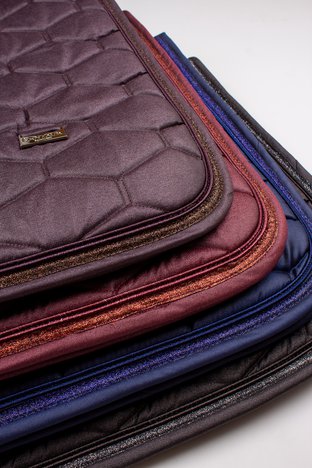 Nádherná třpytivá podsedlová dečka z elegantního materiálu. Ozdobný třpytivý lem a kovové logo Kentaur. Dečka je podšitá HI-TECH síťovinou s rychleschnoucí funkcí, která navíc výborně odvádí pot od koně.