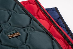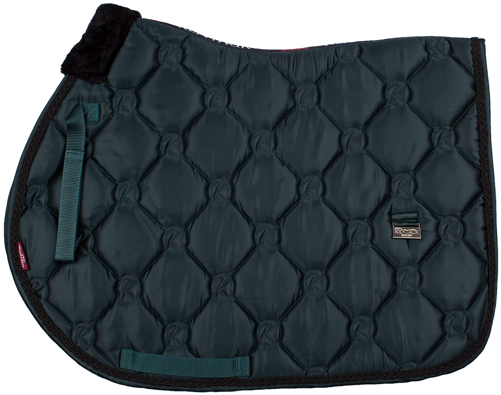 Podsedlová dečka má díky saténové tkanině krásný lesk a styl. Ozdobný lem, umělý beránek na kohoutku, prošev K a kovové logo Kentaur dodává podsedlové dečce luxusní design. Dečka je podšitá HI-TECH síťovinou s rychleschnoucí funkcí, která navíc výborně odvádí pot od koně.