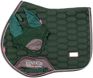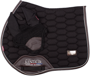 Podsedlová dečka s náušníky v nádherném vzhledu z nového JQ materiálu. Nepřehlédnutelný desing prošívání, ozdobný lem z koženky s decentním bílým výpustkem a kovovým logem Kentaur. Dečka je podšitá CoolMax síťovinou, která umožňuje rychlé schnutí a prodyšnost. Anatomický tvar zajišťuje, že dečka nikde netlačí a neleží na kohoutku.