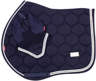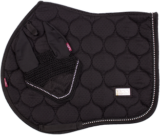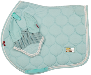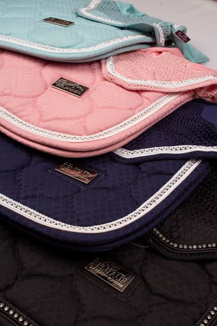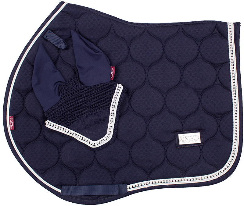 Podsedlová dečka s náušníky v luxusním vzhledu z nového JQ materiálu. Je zdobena dvojitou lemovkou s třpytivým řetízkem uprostřed a kovovým logem Kentaur. Dečka je podšitá CoolMax síťovinou, která umožňuje rychlé schnutí a prodyšnost. Anatomický tvar zajišťuje, že dečka nikde netlačí a neleží na kohoutku.