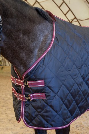 Stájová termodeka se zateplením 100g ve velmi dobré kvalitě za skutečně příznivou cenu. Pohodlná a prodyšná deka, která vyrobená z prodyšného polyesteru 420D ripstop, který působí jako bariéra pro srst vašeho koně a odpuzuje prach, špínu a skvrny. Disponuje předním zapínáním na dvě T-přezky jištěné suchým zipem, křížovým zapínáním pod břichem a zapínání mezi zadní nohy.