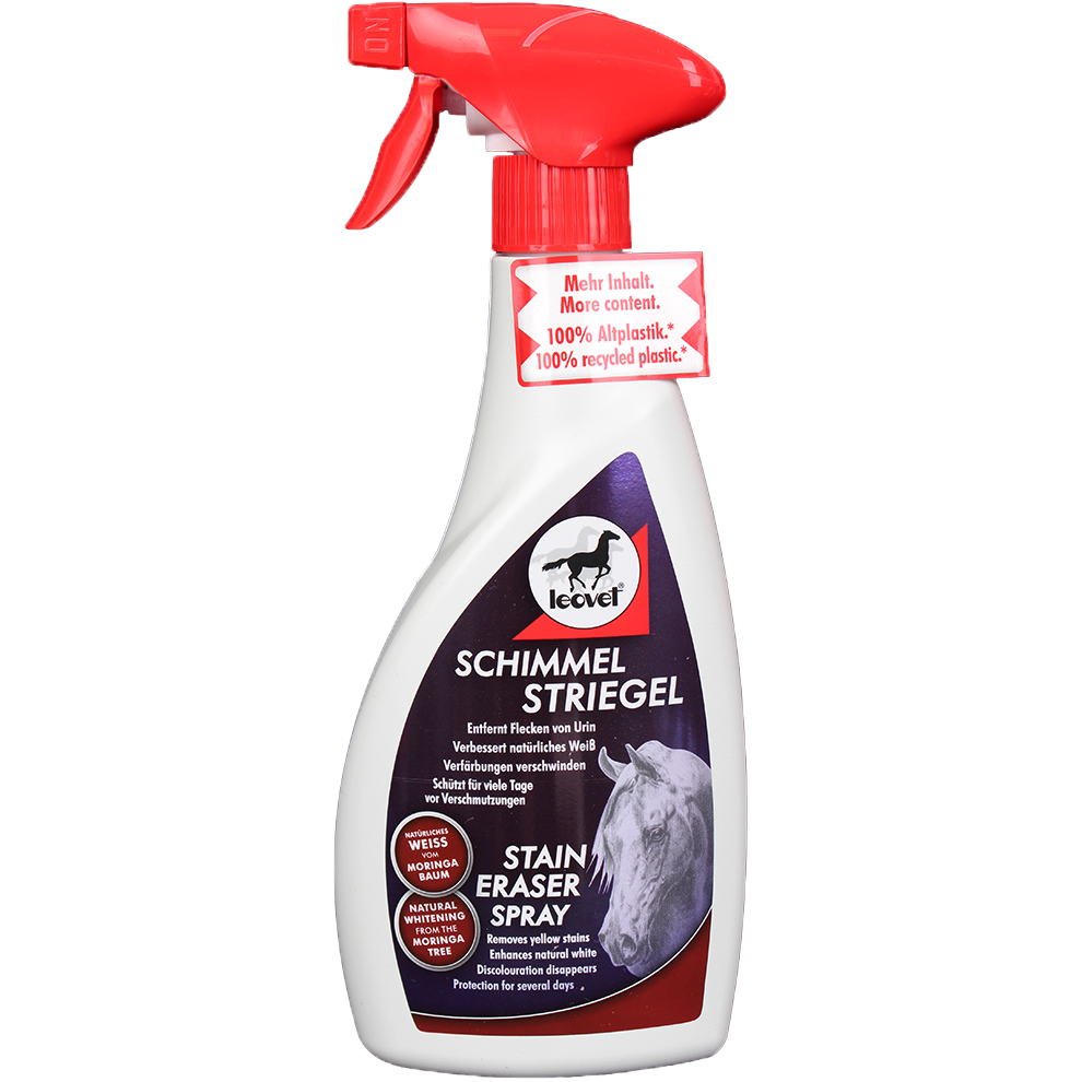 Sprej s obsahem přírodních proteinů ke snadnému odstraňování skvrn od hnoje či trávy ze světlé srsti. Pravidelné používání pečuje o srst a žíně, dodává jim třpyt, objem a odolnost vůči obarvení od špíny. Přípravek se nastříká na srst a žíně, srst se vytře suchým hadrem a po zaschnutí důkladně vykartáčuje.