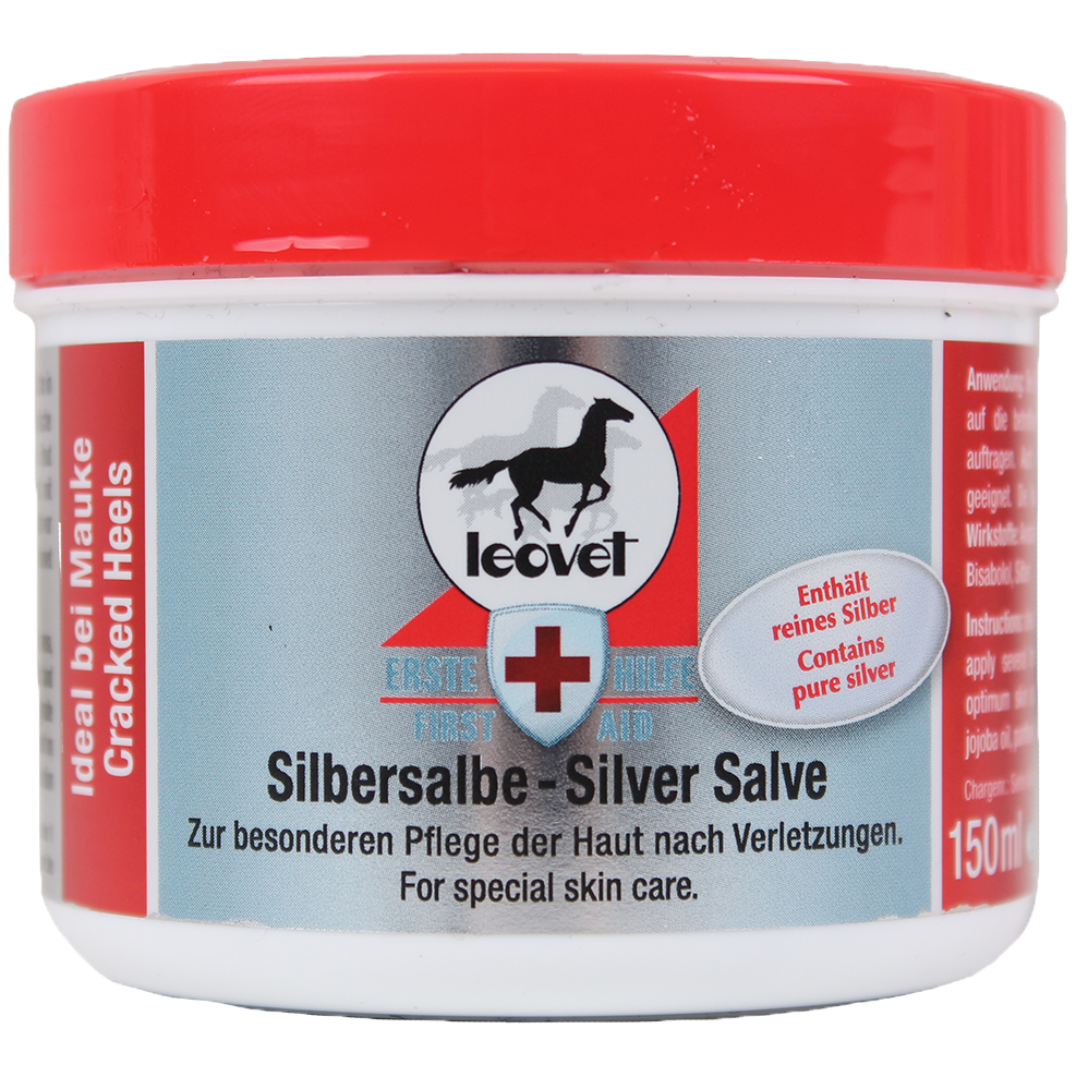 Silbersalbe mast obsahuje koloidní pravé stříbro, na jehož základě je schopna vytvořit odolný povlak, stále uvolňující stříbro. Takto rozvíjí antiseptické účinky a omezuje působení bakterií. Protizánětlivé, regeneruje kůži a zklidňuje ji. Vysoce kvalitní rostlinné oleje se starají o popraskanou kůži, zvlhčují ji a činí pružnou. Působí také jako ochrana spěnky před vlhkostí a bakteriemi. Silbersalbe může být používaná společně s Zinkoxidovým sprejem od Leovetu.