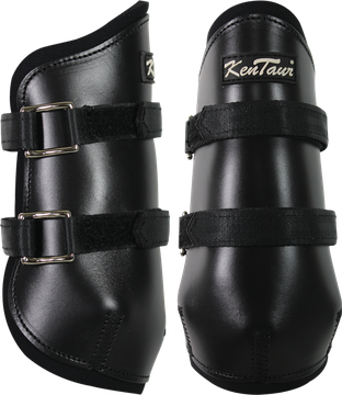 Kožené zadní stahovací chrániče s neoprenovým polstrováním. Zapínání na pevné pásky se suchým zipem YKK pro dobré dotažení. Vysoké provedení.