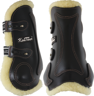 Kožené chrániče s odnímatelným polstrováním z medicinální skopovice.