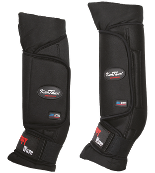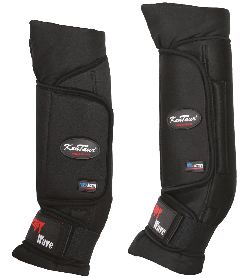 Stájové chrániče s magnety. Magnetické pole podporuje cirkulaci krve v končetině koně.