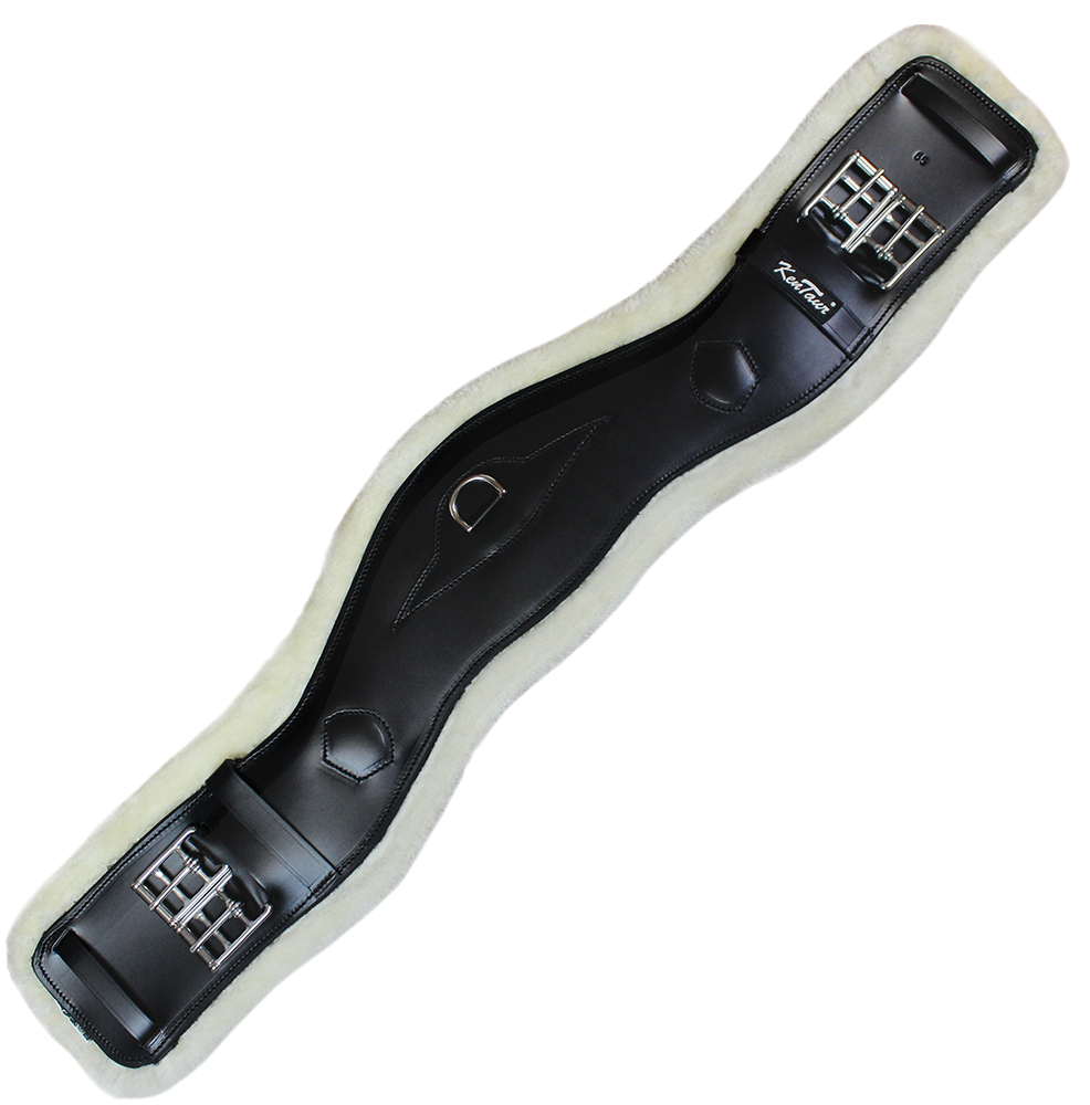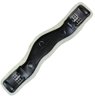 Anatomic dressage leather girth with artificial sheepskin lining. Elastic to both sides.
