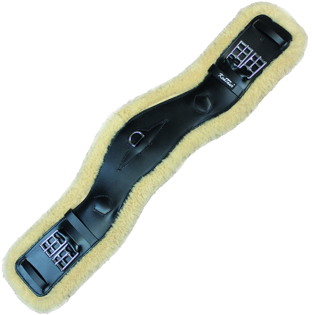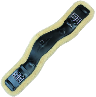Anatomic dressage leather girth with medical sheepskin lining. Elastic to both sides.